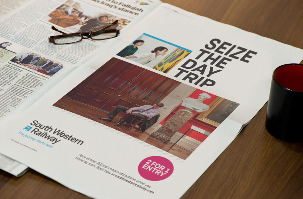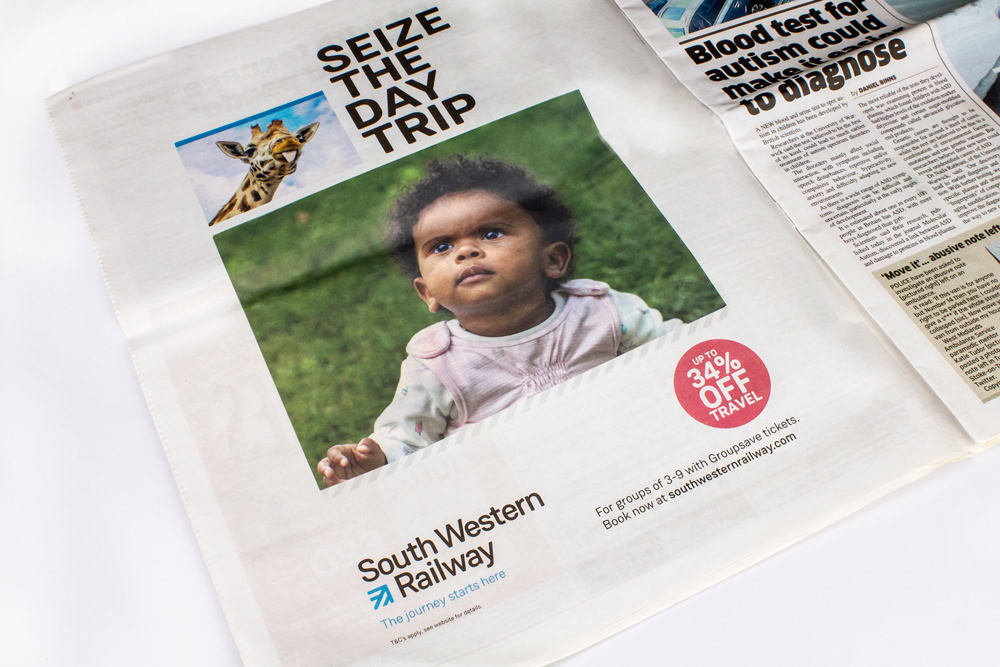 Design for the Spring 2018 campaign for South Western Railway. The design was implemented across multiple channels including press, online and OOH.